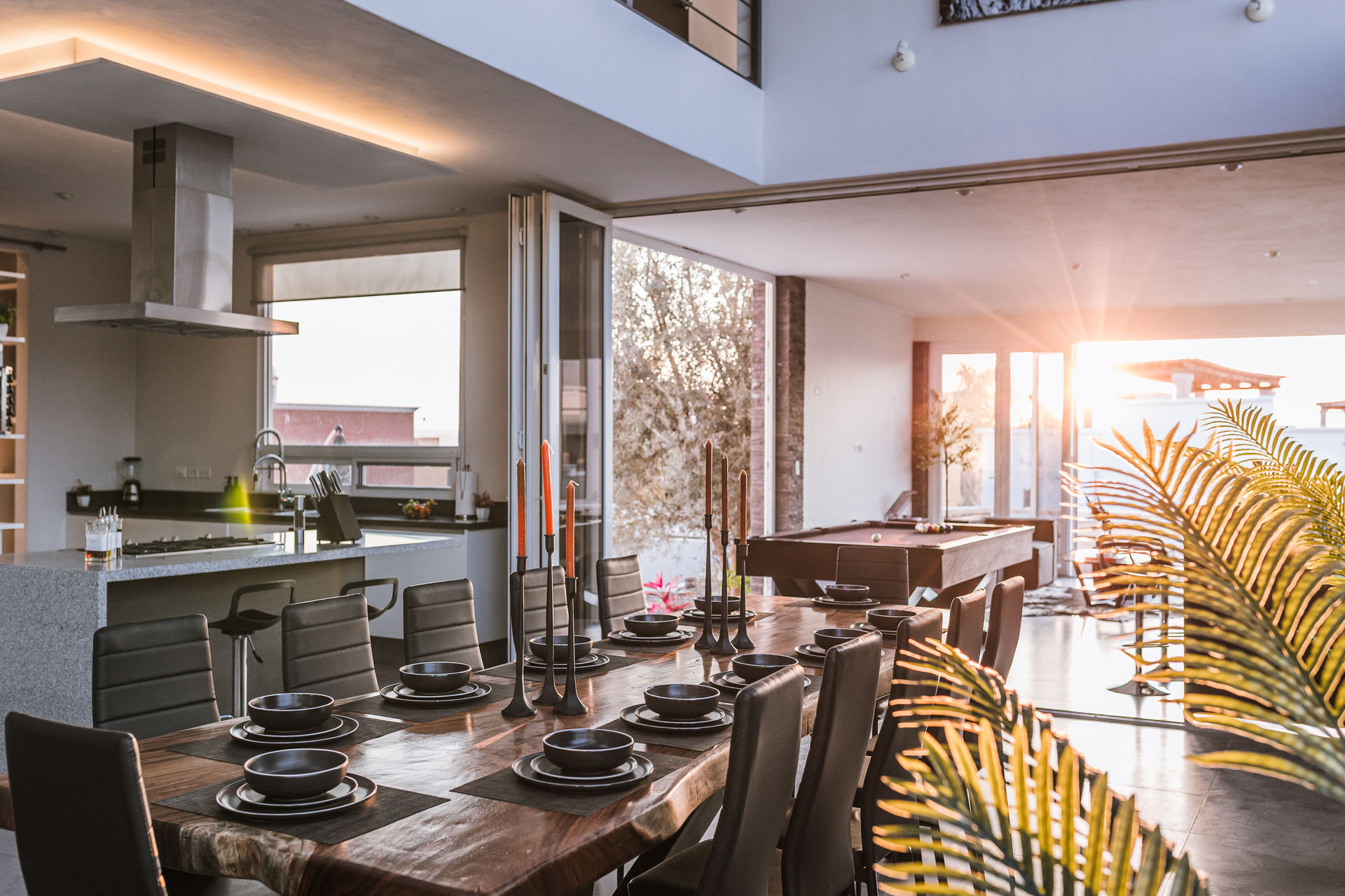 Comedor: Mesa de madera de parota con capacidad para hasta 14 comensales.